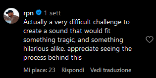 Tra i commenti negativi, però, si trova anche qualche messaggio di incoraggiamento: “È molto difficile creare un suono che si adatti sia a qualcosa di tragico che a qualcosa di esilarante. Appezzo molto che ci abbiate fatto vedere il processo che c’è dietro”, ha commentato un utente.